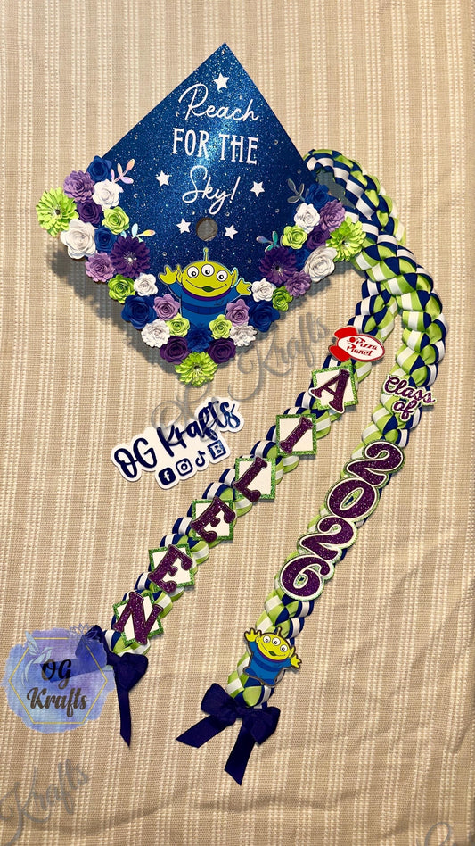 Alien Graduation Topper Lei Bundle Personalized Grad Cap Graduation Lei Class of 2026 Graduation Topper Reach for the Sky Topper Lei Bundle