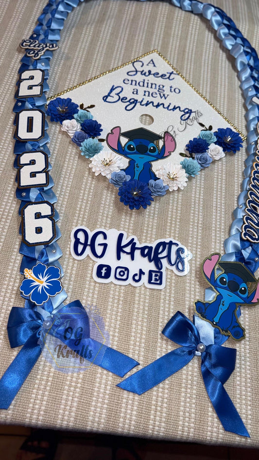 Blue Alien Graduation Topper/Lei Bundle Personalized Grad Cap Graduation Lei Class of 2026 Graduation Topper Grad Gift Topper/Lei Girly Grad