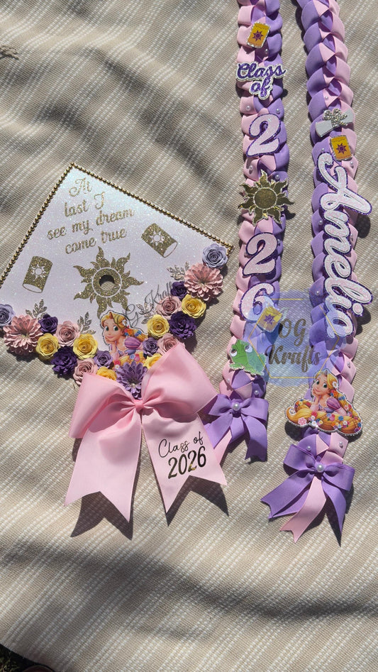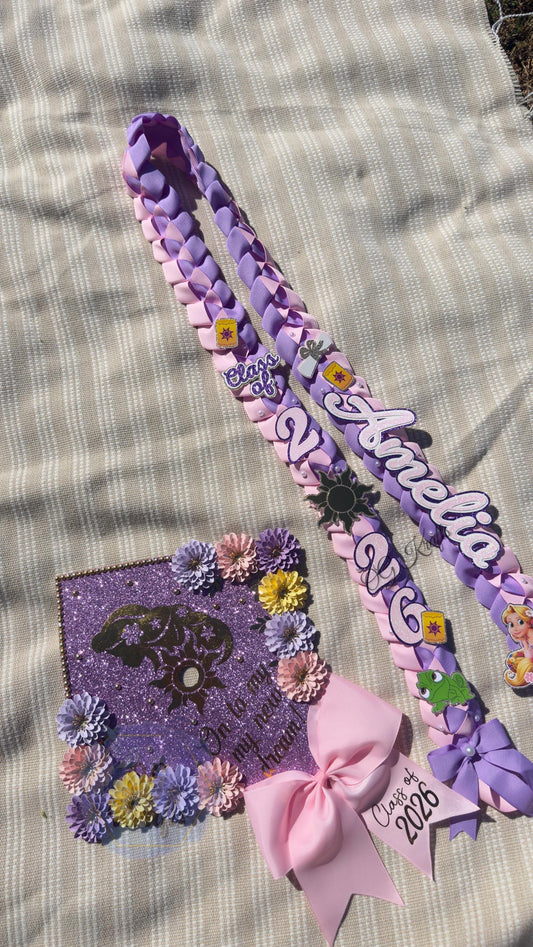 Custom Princess Graduation Topper/Lei Bundle Personalized Grad Cap Graduation Lei Class of 2026 Frog Princess Topper/Lei Viral Senior Gift