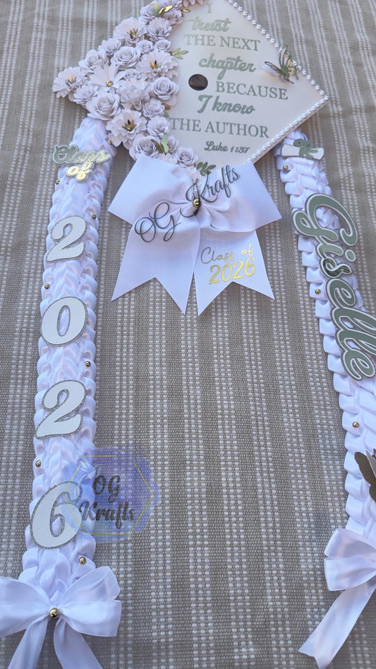 Girly Graduation Lei & Grad cap Lei Senior Night Gift Lei Braided Ribbon Lei Graduation Ribbon Lei Graduate Lei 2026 Senior Wht Military Lei