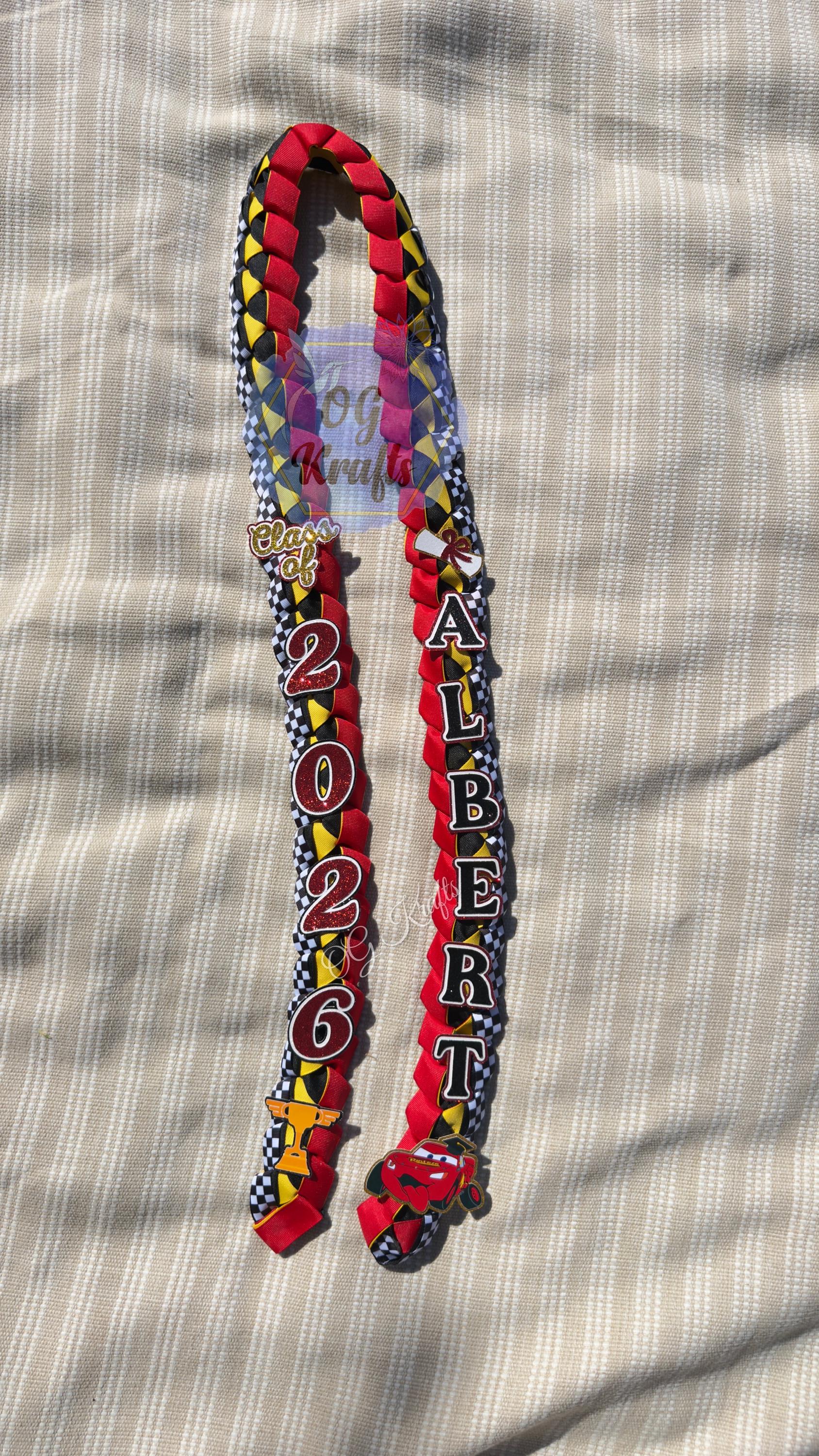 Race car Graduation Lei Custom Ribbon Lei Class of 2026 Keepsake Graduation Ribbon Necklace Race Car Grad Lei Male Graduation gift